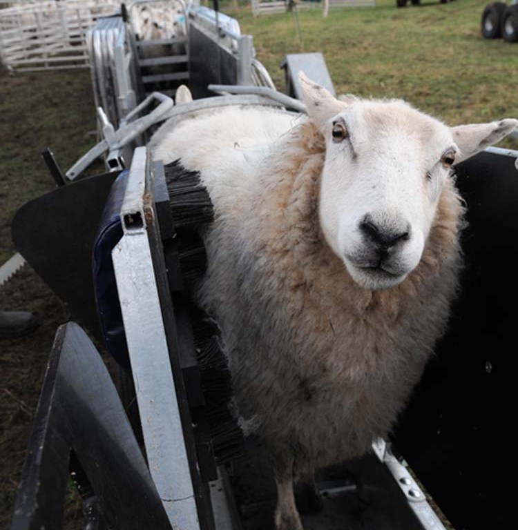 It uses a swinging side panel and the Perkinz award-winning SheepFlow bristles to provide simple, yet very effective control of sheep and lambs. The operator simply leans against the panel as the animal is passing to stop and hold it in place. The reversed SheepFlow bristles “lock” the animal for easy handling.